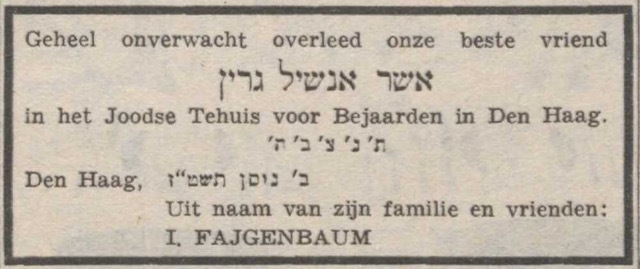 Op dit adres woonde de uit Hongarije afkomstige Ancel Grün met zijn eveneens uit Hongarije gekomen vrouw Rozalia en hun vijf kinderen. Beiden verlieten hun geboorteland vanwege het onrustige politieke klimaat, de slechte economie en het vele antisemitische geweld. In Den Haag kreeg Ancel een aanstelling bij de Joodse Gemeente.