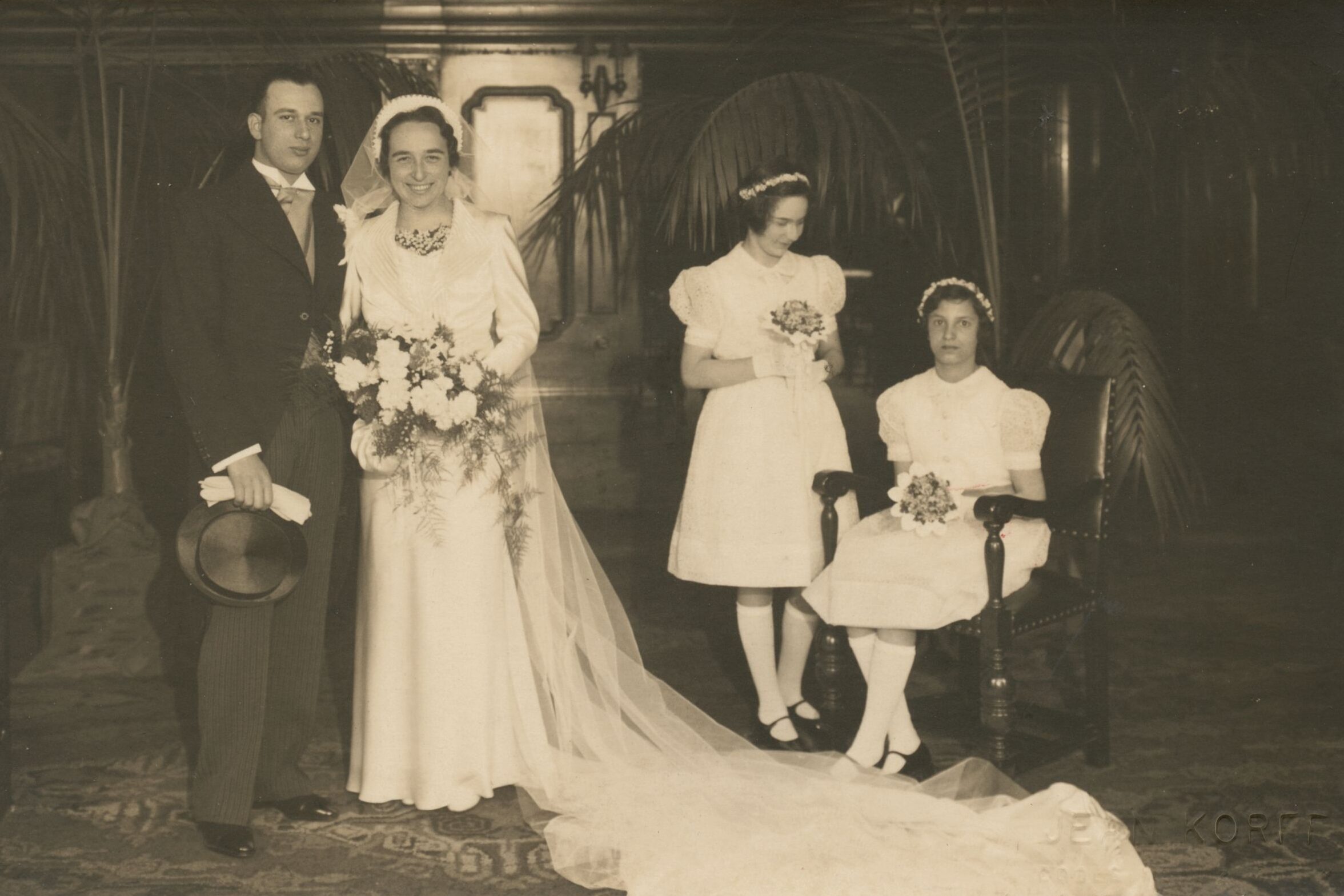 Trouwfoto van Salomon Frenk en Liselotte Kann, 17 april 1938 Rotterdam, privébezit Ruth Frenk.
